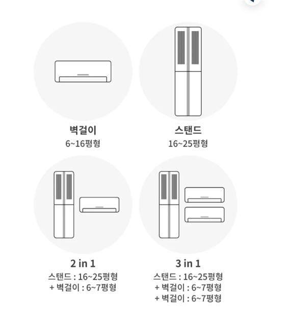 따라서, 침실까지 냉방이 필요하다면 상황에 따라 2 in 1 혹은 3 in 1 선택을 권장합니다.
