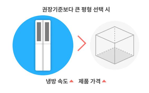 *권장 기준보다 큰 평형을 구입하면 냉방속도는 빨라지지만 가격이 비싸짐*