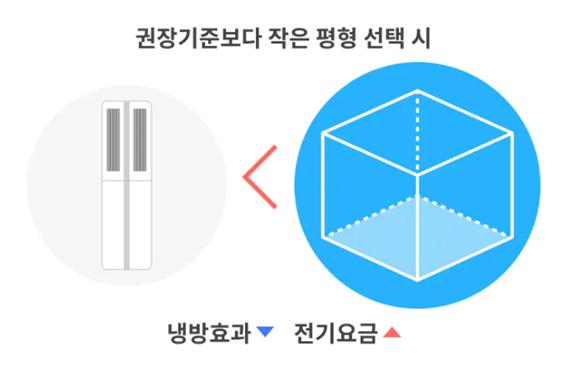 *권장 기준보다 작은 평형을 구입하면 냉방효과는 떨어지고, 전기요금은 더 나올 수도 있음을 주의해야 함*