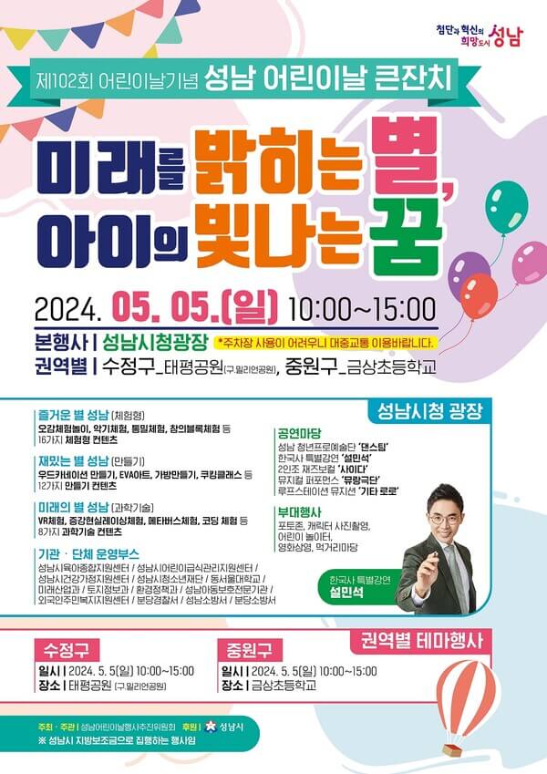 1. 성남 어린이날 큰잔치(실내외 행사 모두 포함)