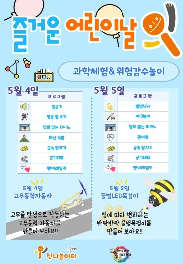 프로그램: 고무동력 자동차 만들기, 화산폭발 만들기, 야구놀이, 명중 활쏘기 등 14개의 체험부스