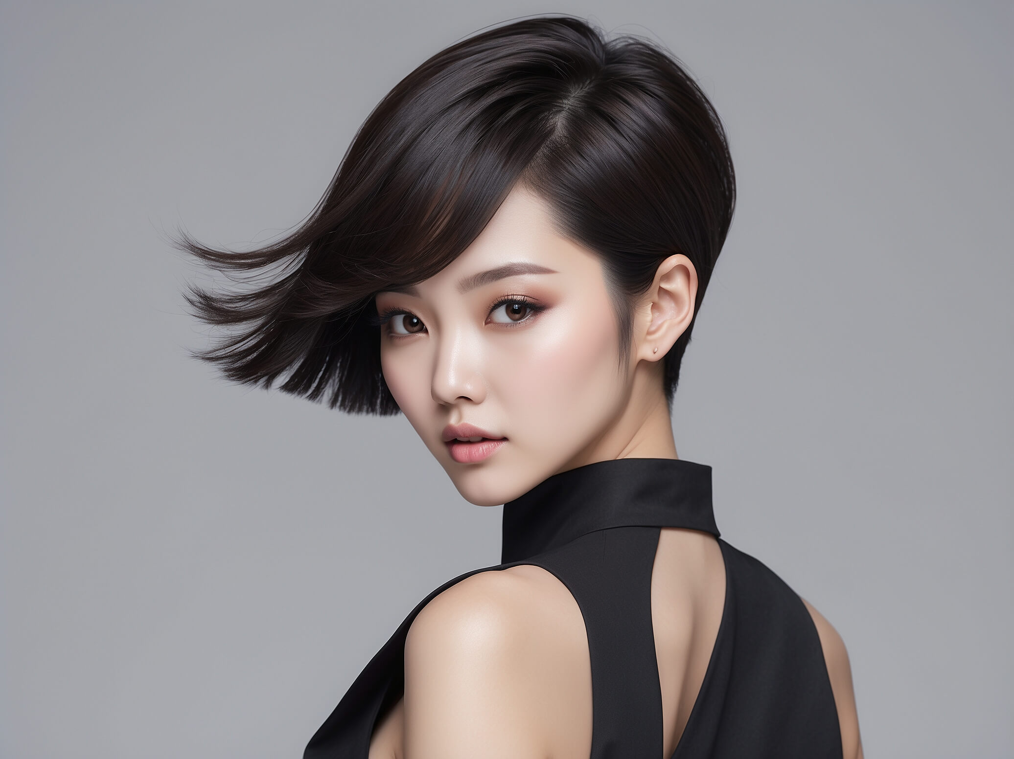 슬릭 밥은 깔끔한 라인과 날카로운 가장자리로 대담한 개성을 드러냅니다. 이 스타일은 여름에 특히 인기가 많으며, 간편하면서도 세련된 데일리 룩을 완성시켜 줍니다.. 차분한 머릿결을 유지하기 위해 헤어 오일이나 세럼을 사용해 보세요..