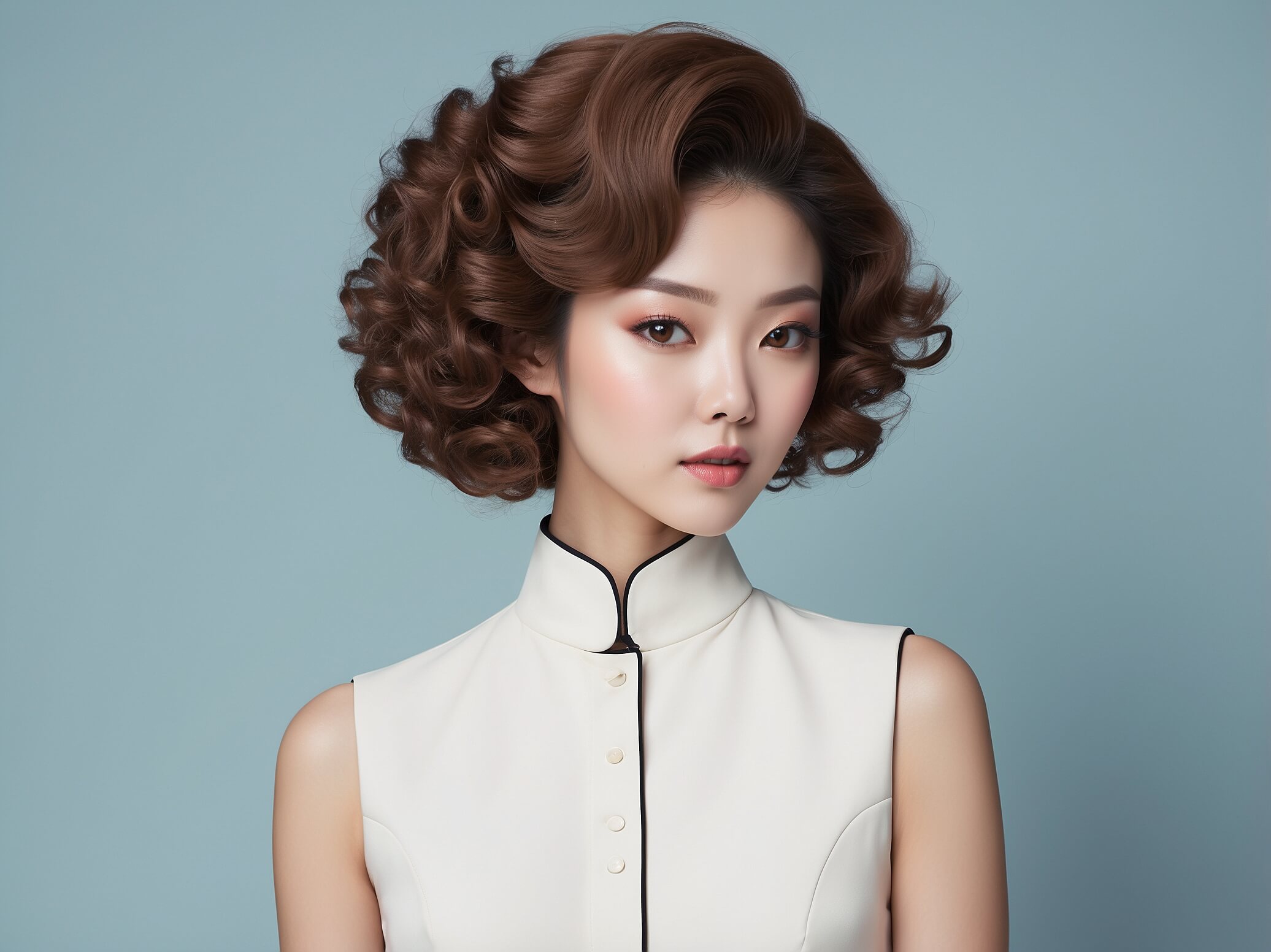 70년대 스타일에서 영감을 받은 키티 컷은 부드러운 라인과 자연스러운 프린지로 복고풍의 매력을 선사합니다. 사랑스러운 느낌을 더하고 싶다면, 자연스러운 웨이브나 컬을 추가해 보세요.. 빈티지한 액세서리와도 잘 어울리는 스타일입니다.